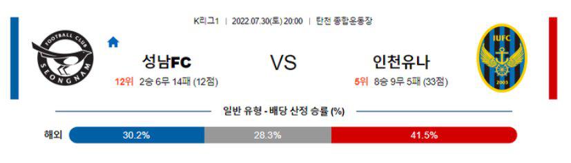 [K리그1] 7월30일 성남FC vs 인천유나이티드