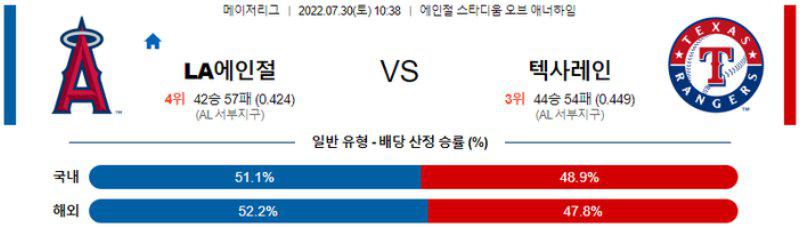 【MLB】 7월 30일 LA 에인절스 vs 텍사스