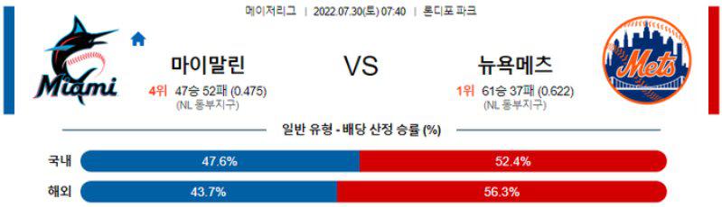 【MLB】 7월 30일 마이애미 vs 뉴욕메츠