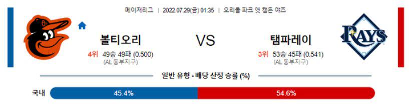열람중 【MLB】 7월 29일 볼티모어 vs 탬파베이 2022.07.28 658