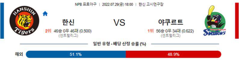 올시즌 홈에서 8경기 등판해서 1.12의 평균자책점을 기록중인 니시 유키 투수와 한신 상대로 16이닝 무실점의 진행형을 만들어 낸 오가와 야스히로 투수의 팽팽한 투수전이 예상되는 가운데 1점을 쥐어 짜내는 능력에서 한신 타선에 대한 기대치가 높은 경기다. 한신 승리 가능성을 추천 한다.