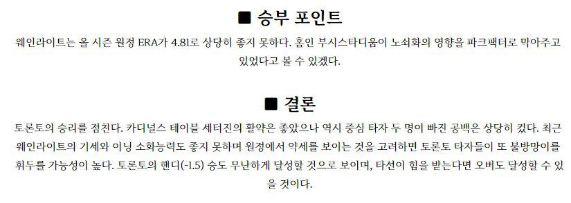 삼성(수아레즈 4승5패 2.27) 수아레즈 투수는 직전경기(7/22) 원정에서 키움 상대로 구원으로 나와서 2.1이닝 무실점 노디시전을 기록했으며 이전경기(7/9) 홈에서 SSG 상대로 6이닝 4실점(비자책) 노디시전을 기록했다. 2연승 흐름 속에 올시즌 KBO 무대 데뷔후 18경기 4승5패, 9경기 QS 성적이며 5월 5경기 승패없이 2.35, 6월 …