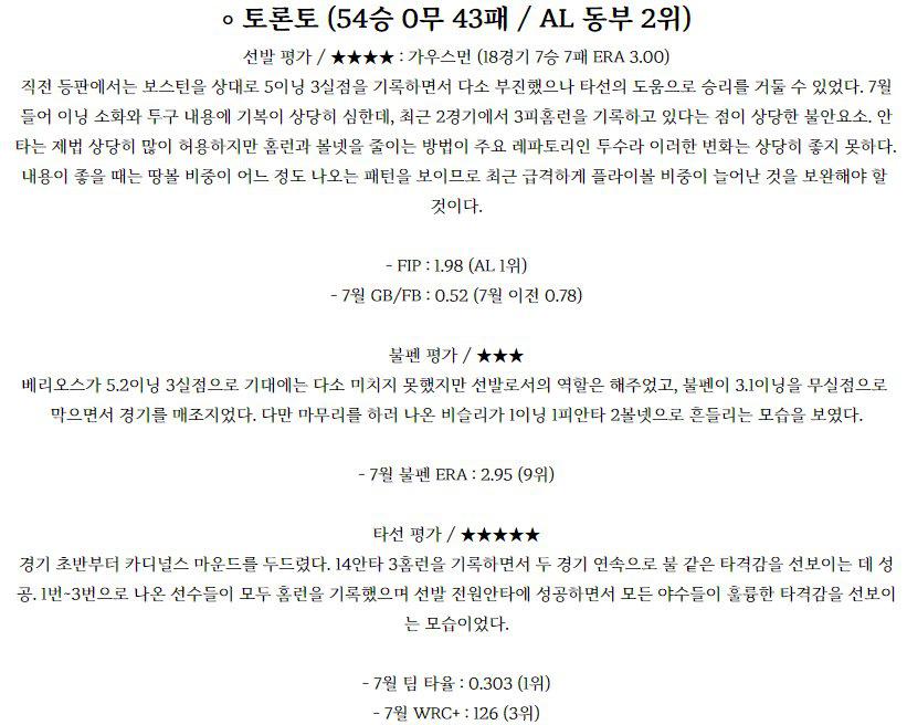 【MLB】 7월 28일 토론토 vs 세인트루이스