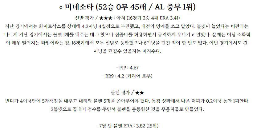 【MLB】 7월 28일 밀워키 vs 미네소타