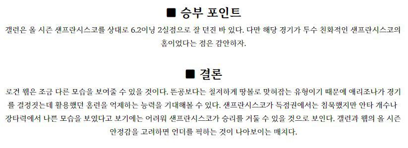 삼성(수아레즈 4승5패 2.27) 수아레즈 투수는 직전경기(7/22) 원정에서 키움 상대로 구원으로 나와서 2.1이닝 무실점 노디시전을 기록했으며 이전경기(7/9) 홈에서 SSG 상대로 6이닝 4실점(비자책) 노디시전을 기록했다. 2연승 흐름 속에 올시즌 KBO 무대 데뷔후 18경기 4승5패, 9경기 QS 성적이며 5월 5경기 승패없이 2.35, 6월 …