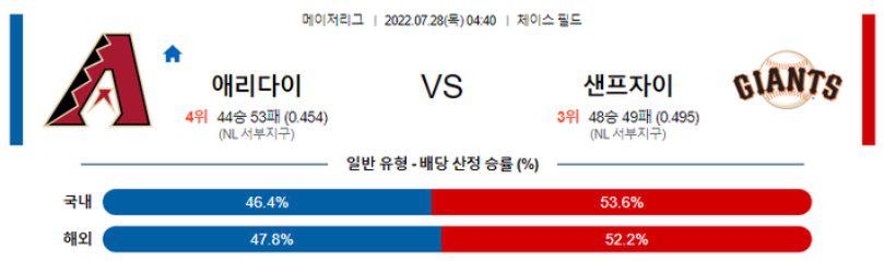 【MLB】 7월 28일 애리조나 vs 샌프란시스코