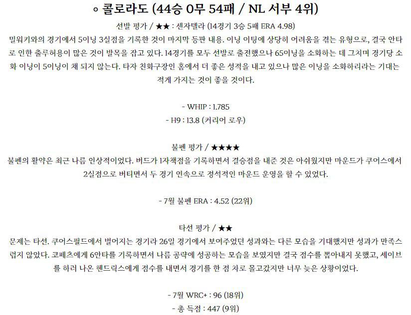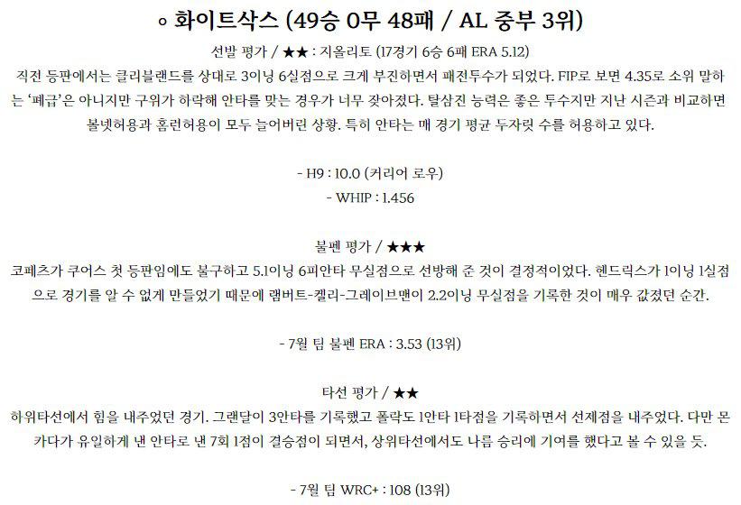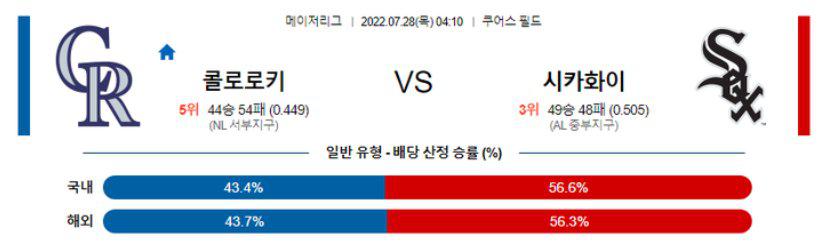 【MLB】 7월 28일 콜로라도 vs 시카고화이트