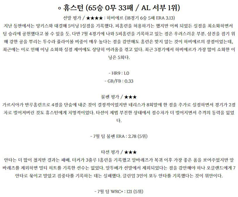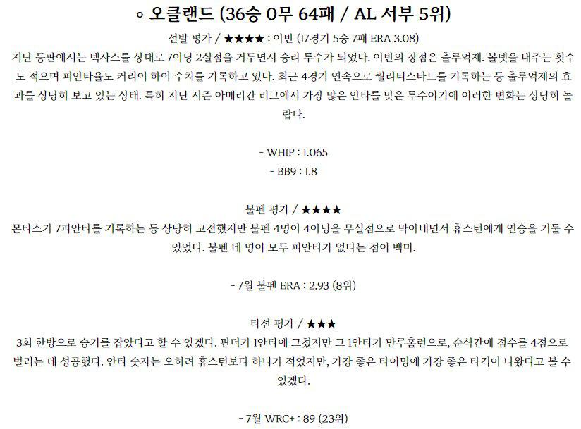 【MLB】 7월 28일 시애틀 vs 텍사스