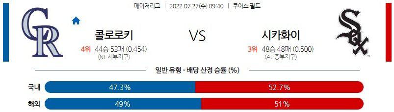 【MLB】 7월 27일 콜로라도 vs 시카고 화이트삭스