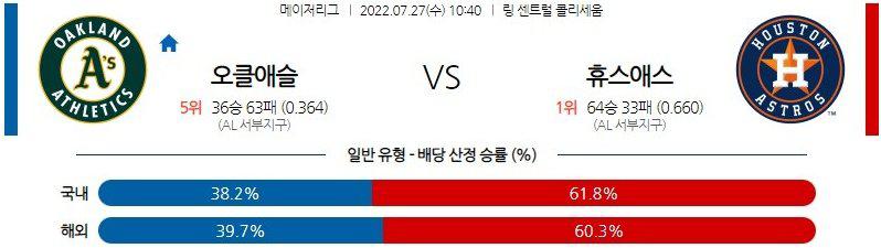 열람중 【MLB】 7월 27일 오클랜드 vs 휴스턴 2022.07.27 498