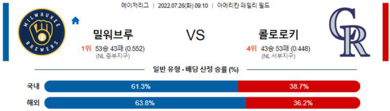 【MLB】 7월 26일 밀워키 vs 콜로라도