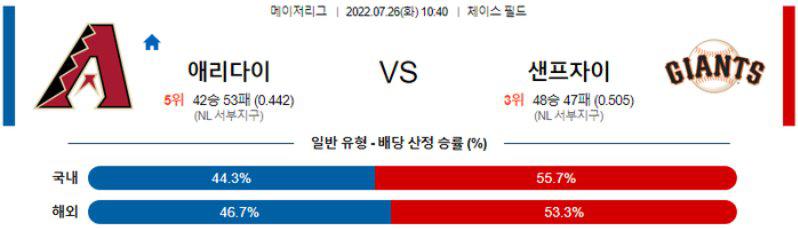 【MLB】 7월 26일 애리조나 vs 샌프란시스코