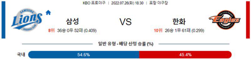 [KBO] 7월 26일 삼성 vs 한화