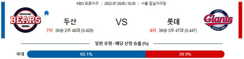 열람중 [KBO] 7월 26일 두산 vs 롯데 2022.07.26 406