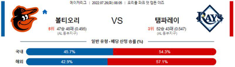 【MLB】 7월 26일 볼티모어 vs 탬파베이