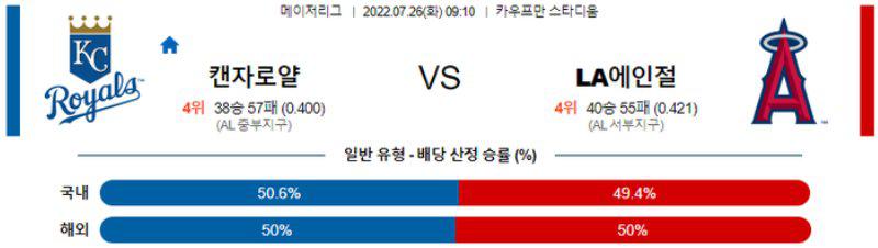 【MLB】 7월 26일 캔자스시티 vs LA 에인절스