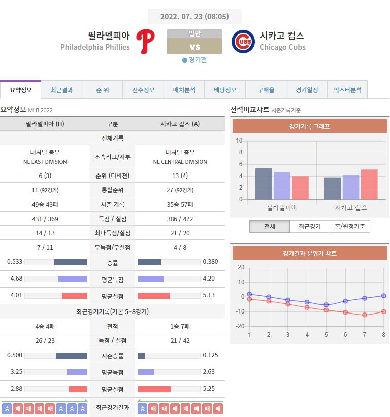 열람중 [스포츠분석][MLB분석] 7월 23일 MLB 분석 필라델피아 VS 시카고컵스 2022.07.22 502