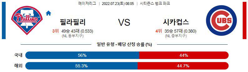 [스포츠분석][MLB분석] 7월 23일 MLB 분석 필라델피아 VS 시카고컵스