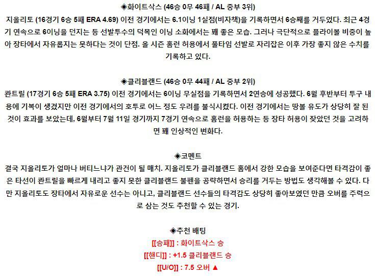【MLB】 7월 23일 화이트삭스 vs 클리브랜드