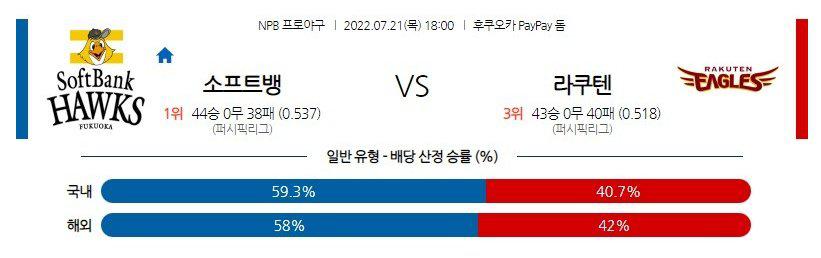 【NPB】 7월21일 소프트뱅크 vs 라쿠텐
