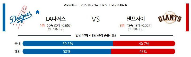 [스포츠분석][MLB분석] 7월 22일 MLB 분석 LA다저스 VS 샌프란시스코