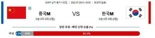 남자 동아시안컵 7월 20일 19:00 중국 : 한국