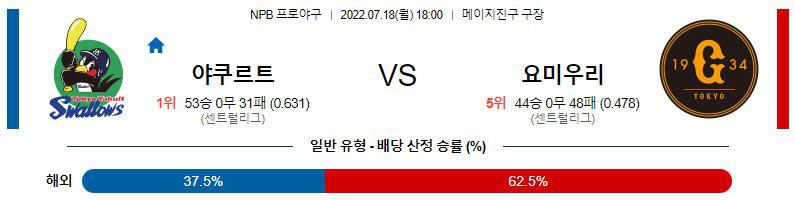 【NPB】 7월18일 야쿠르트 vs 요미우리