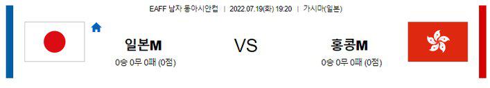 일본은 해외파 선수들이 이번 명단에서 제외됐으나, 자국 리그에서 뛰어난 폼을 유지하고 있는 선수들을 대거 발탁했다. 홍콩의 전력과는 비교할 수준이 아니다. 3년전 동아시안컵 대회 경기에서도 홍콩을 5대0으로 대파한 적이 있으며, 스포츠중계 홈 이점까지 안고 있으므로, 홍콩에게 두 핸디캡 승리(H-2.0), (H-3.5)와 오버(3.5 기준) 모두 가능하겠다.