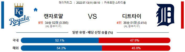 【MLB】 7월 13일 캔자스시티 vs 디트로이트