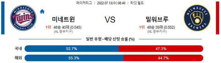 【MLB】 7월 13일 미네소타 vs 밀워키