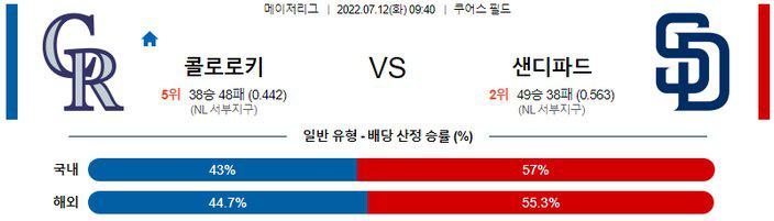 【MLB】 7월 12일 콜로라도 vs 샌디에이고