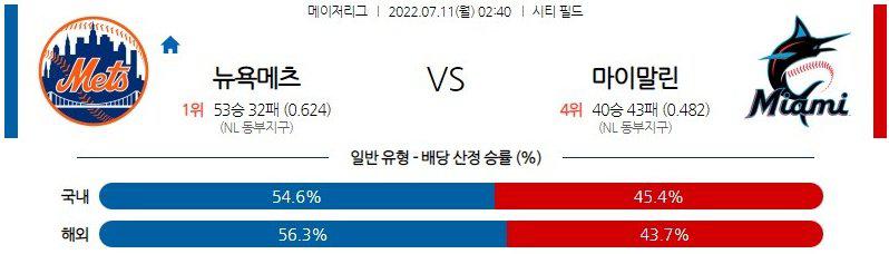 【MLB】 7월 11일 뉴욕 메츠 vs 마이애미