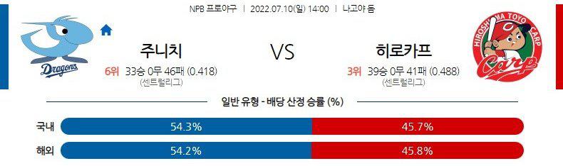 시즌 히로카프와 첫 만남에서 완봉승을 기록하는 가운데 올시즌 상대전 3경기(2승1패), 23.1이닝 1실점을 기록중인 야나기 유야 투수를 믿어야 하는 경기다. 또한, 홈에서 히로카프를 상대로 긁히면 끝까지 갔던 야나기 유야 투수 였다. 주니치 승리 가능성을 추천 한다.
