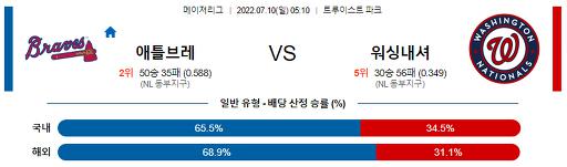 7월 10일 05:10 MLB 애틀랜타 : 워싱턴