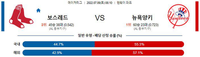 【MLB】 7월 9일 보스턴 vs 뉴욕 양키스