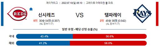 7월 10일 05:10 MLB 신시내티 : 탬파베이