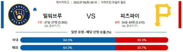 열람중 【MLB】 7월 9일 밀워키 vs 피츠버그 2022.07.08 602