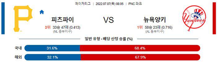 【MLB】 7월 7일 피츠버그 vs 뉴욕 양키스