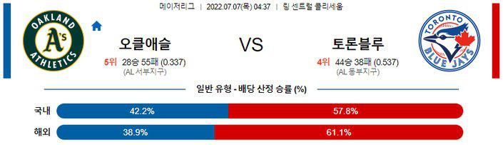 열람중 【MLB】 7월 7일 오클랜드 vs토론토 2022.07.07 500
