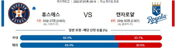 【MLB】 7월 7일 휴스턴 vs 캔자스시티