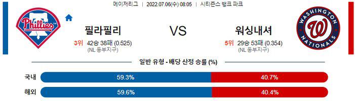 【MLB】 7월 6일 필라델피아 vs 워싱턴