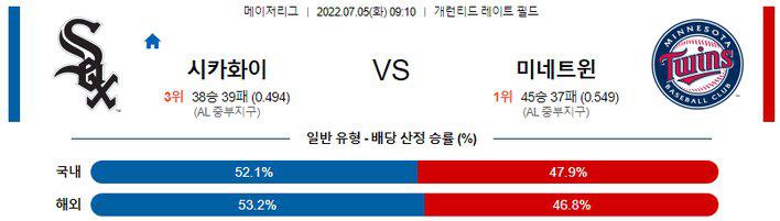 【MLB】 7월 5일 시카고 화이트삭스 vs 미네소타