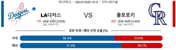 【MLB】 7월 5일 LA 다저스 vs 콜로라도