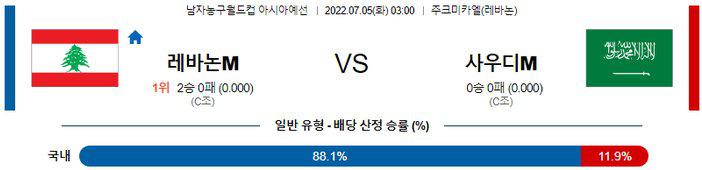 레바논의 승리를 본다. 사우디아라비아의 에이스인 알마와니 상대로 전혀 골밑 경쟁력에서 밀리지 않은 센터 알리 하이다르가 팀의 중심을 잡아줄 것이고 사우드와 아라키가 외곽을 폭격할 것이다. 사우디아라비아는 스윙맨 전력이 좋은 팀이 아닌데 이번 일정에서 빅맨 소집을 하지 않았기에 고전이 예상된다.