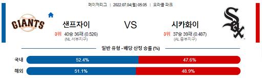 7월 4일 05:05 MLB 샌프란시스코 : C.화이트삭스