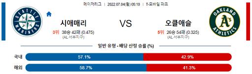 7월 4일 05:10 MLB 시애틀 : 오클랜드