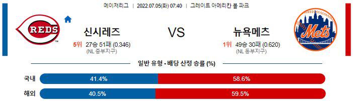 【MLB】 7월 5일 신시내티 vs 뉴욕 메츠