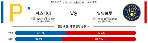 7월 4일 02:35 MLB 피츠버그 : 밀워키