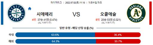 7월 2일 11:10 MLB 시애틀 : 오클랜드