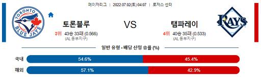 7월 2일 04:07 MLB 토론토 : 탬파베이
